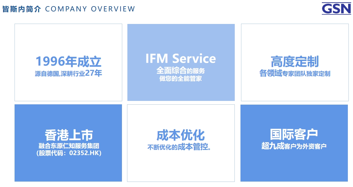 “服务所致,信任所值”,皆斯内(上海)企业管理服务有限公司以“忠诚、勇敢、创新、奉献”为企业精神,以“客户至上,服务至上”为经营理念,为国内外客户提供专业化、综合性现代综合设施管理服务。
